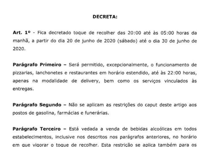 Ver mais Prefeito de Euclides da Cunha decreta ‘toque de recolher’ até o próximo dia 30Prefeito de Quijingue determina ‘toque de recolher’ até o próximo dia 22