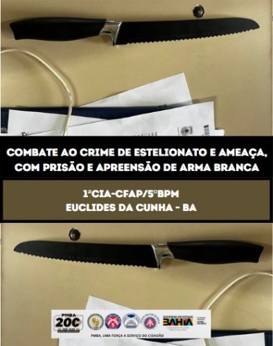 Um homem foi detido no início da tarde deste sábado (14) após ameaçar um ambulante com uma faca em rua movimentada de Euclides da Cunha. A ocorrência foi registrada por volta das 12h, na Rua Castro Alves, e mobilizou uma guarnição da 1ª Companhia CFAP do 5º Batalhão da Polícia Militar, que realizava patrulhamento de rotina na localidade.