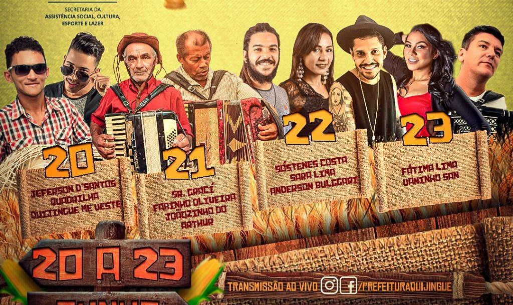 Começa neste domingo (20) e vai até a próxima quinta-feira (23) uma maratona de shows online que prometem relembrar os bons momentos do Arraiá Novo Triunfo, o tradicional festejo junino do município de Quijingue, Bahia. O evento será disponibilizado na Internet nas páginas da Prefeitura Municipal de Quijingue, nas redes sociais Instagram e Facebook.