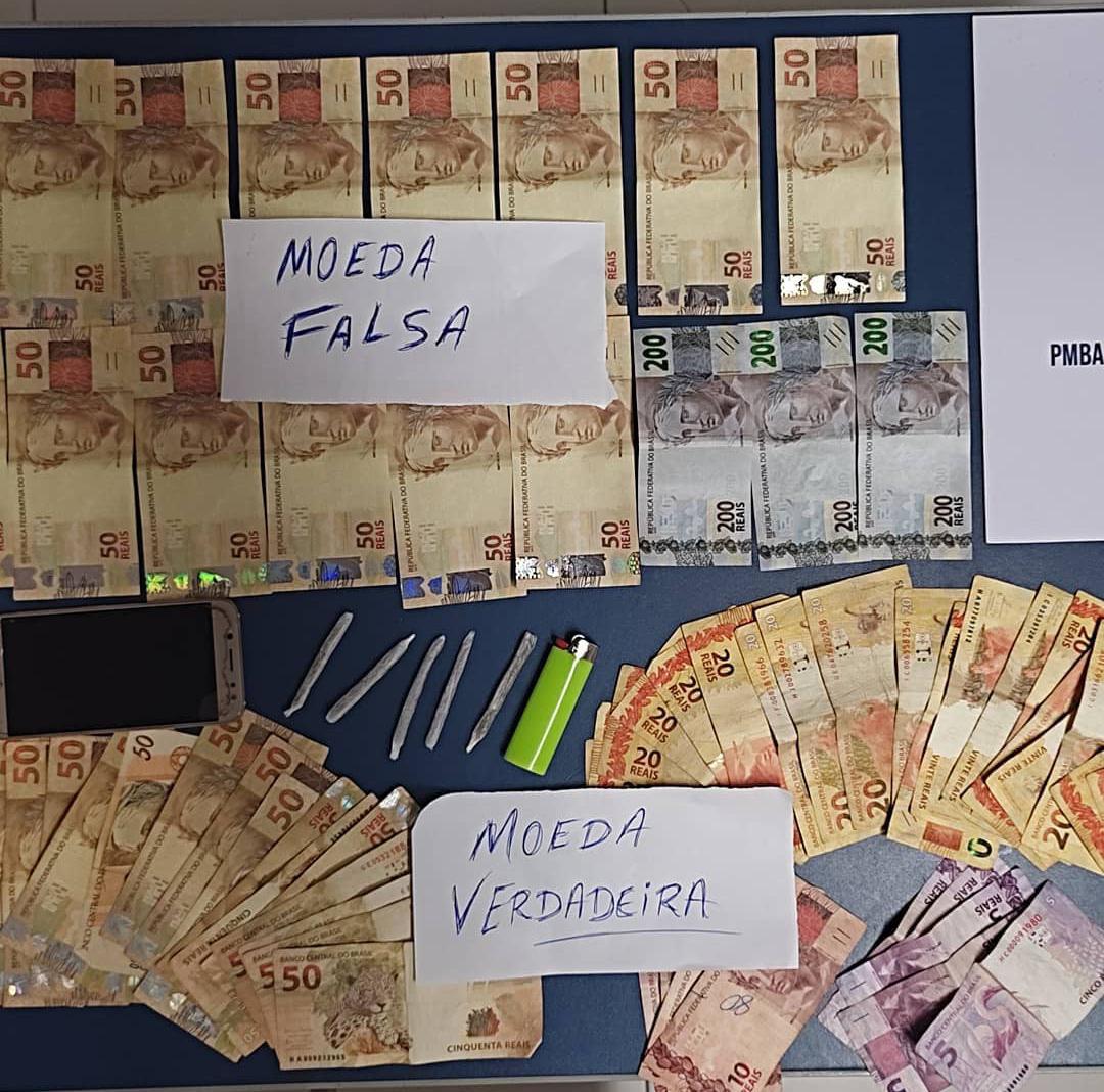 Segundo a PM, foram presas duas mulheres que estavam introduzindo moeda falsa em circulação no comércio de Tucano e região. Com elas foram encontrados os seguintes materiais: R$ 1.577,00 em moeda legítima; R$ 1.300,00 em moeda falsa; 05 cigarros de maconha; 18 caixas de cerveja Itaipava; 02 caixa de cerveja Devassa; 01 caixa de cerveja Budwaser; 02 Sandálias infantis; 02 pacotes de fraldas; 01 tênis; 01 mordedor de Criança; 01 Caixa de som; alimentos perecíveis; 02 pacotes de café; 02 flocão; 02 sardinhas de lata; 02 leite em pó e 01 lata de Mucilon.