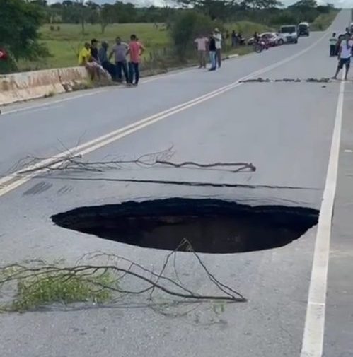 Perigo! Chuva forma cratera na BA-220 entre Monte Santo e Euclides da Cunha